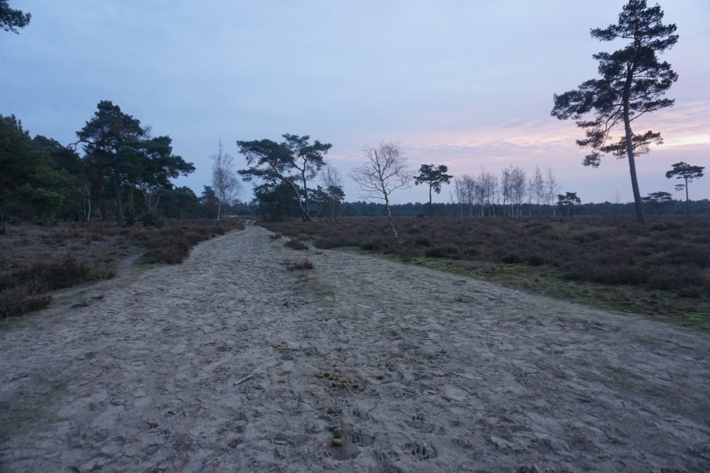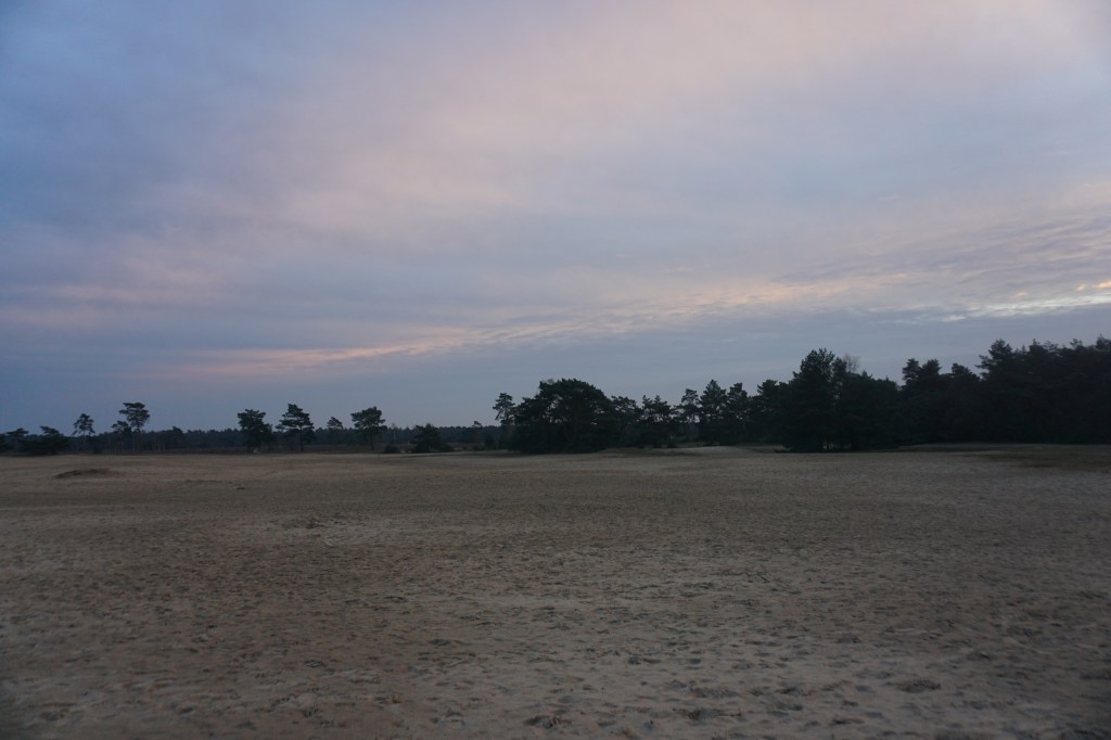 The most spectacular part of the walk starts soon after, when you enter nature reserve De Haere. The heath and sand drifts of De Haere are extraordinary, amplified by the unexpected encounter with bisons, camels, and zebras. The official route only takes a small corner of the sand drifts, but I suggest to make a slightly bigger loop over the sanddunes to take in the full beauty of it.