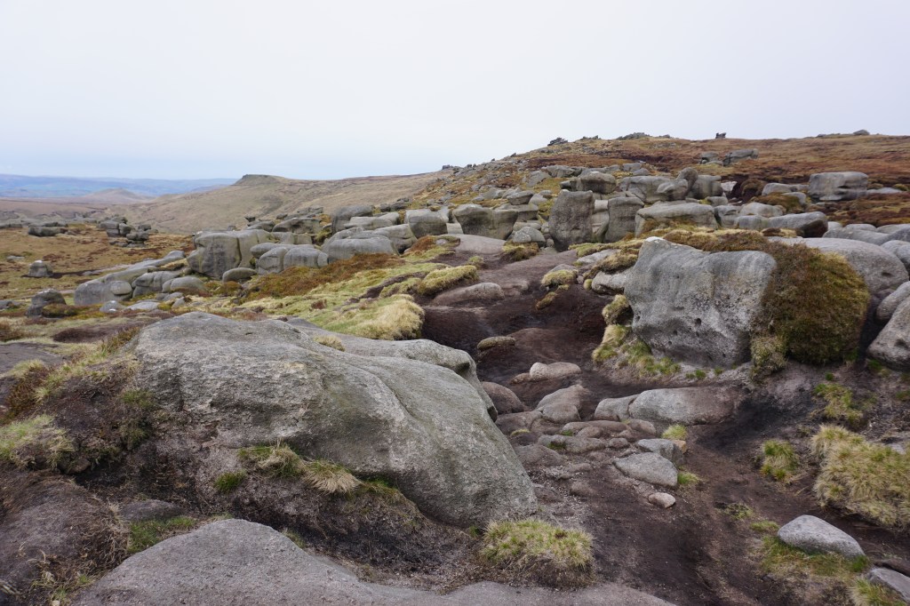 Day 3 (15km) started very foggy, I could not see more than 20 metres so I stayed a bit longer in my tent than I usually would. This last day of the walk is an easy walk as it starts with a long but beautiful descend into Edale. At the bottom of Jacob’s Ladder I took a break to have my breakfast next to the River Noe. The rest of the route into Edale is a moderate descend through pastures. If you do not have enough time to continue the route to Hope, you can finish the walk at Edale. If you continue, you climb steeply to Hollins Cross and on to Back Tor and Lose Hill. It started raining as soon as I left Edale with wind picking up, so I skipped the tops of Back Tor and Lose Hill and instead took the route below the ridge through Brocker Booth Plantation to get away from the ice-cold rain. A descend into Hope, back to River Noe, led me back to Hope railway station, where this hike finishes.