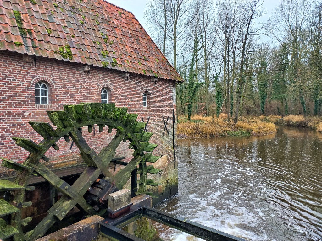Day 1 – 25km: Starting at Winterswijk trainstation, follow the route and streetsigns towards the city centre. Continue through the high street (Misterstraat) to reach the Markt and turn right into Wooldstraat. Keep ahead for 600m then turn right into the Wooldseweg. Just before the railway crossing turn left onto a tarmac track, continuing ahead below a road and into the countryside. Soon a crossing with a signpost signals the long-distance trail the Noaberpad, which you follow turning right and continue to follow for the next 13.5km. The Noaberpad is clearly waymarked with white/red. You leave the trail at point A, next to the great yellow Schloß Diepenbrock. From here follow a different trail marked by a white X, which is the X8 trail from Bad Bentheim to Bislich. At point B (zum Venn) you leave this trail to cross the border back into The Netherlands. In this are just in The Netherlands is where day 1 ends. There are several accomodation options here, including hotels, B&Bs, and campsites. I stayed at Hotel Restaurant Roerdinkhof (point C on the map) which also has a shared kitchen to prepare your own dinner/breakfast.